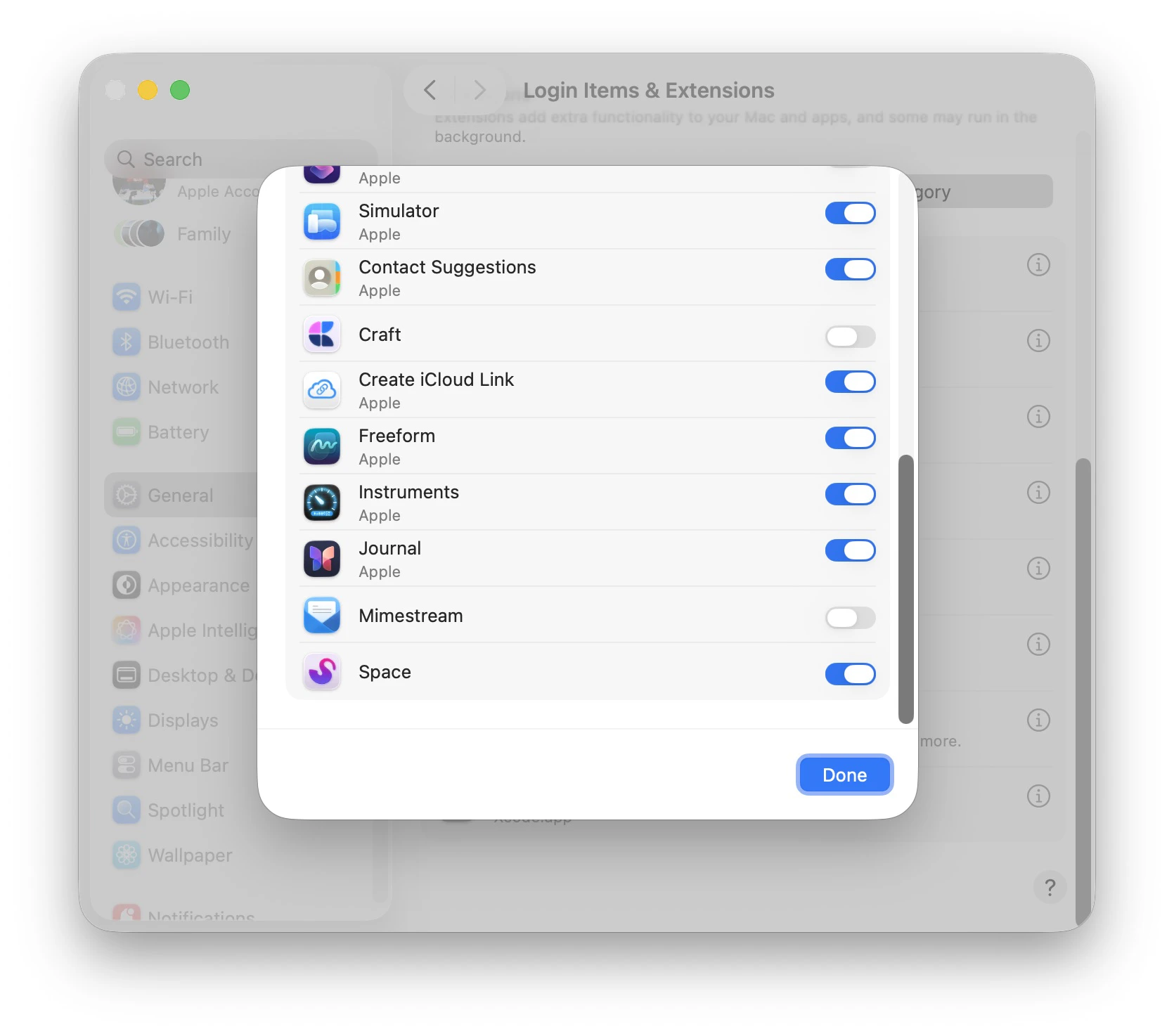 In the list, find Space and toggle it on.
