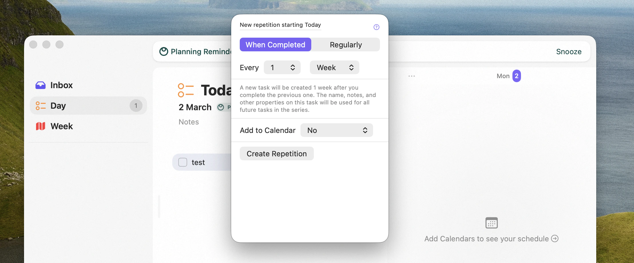 Right click a task and selectEdit Repetition to make any task a repeating task.